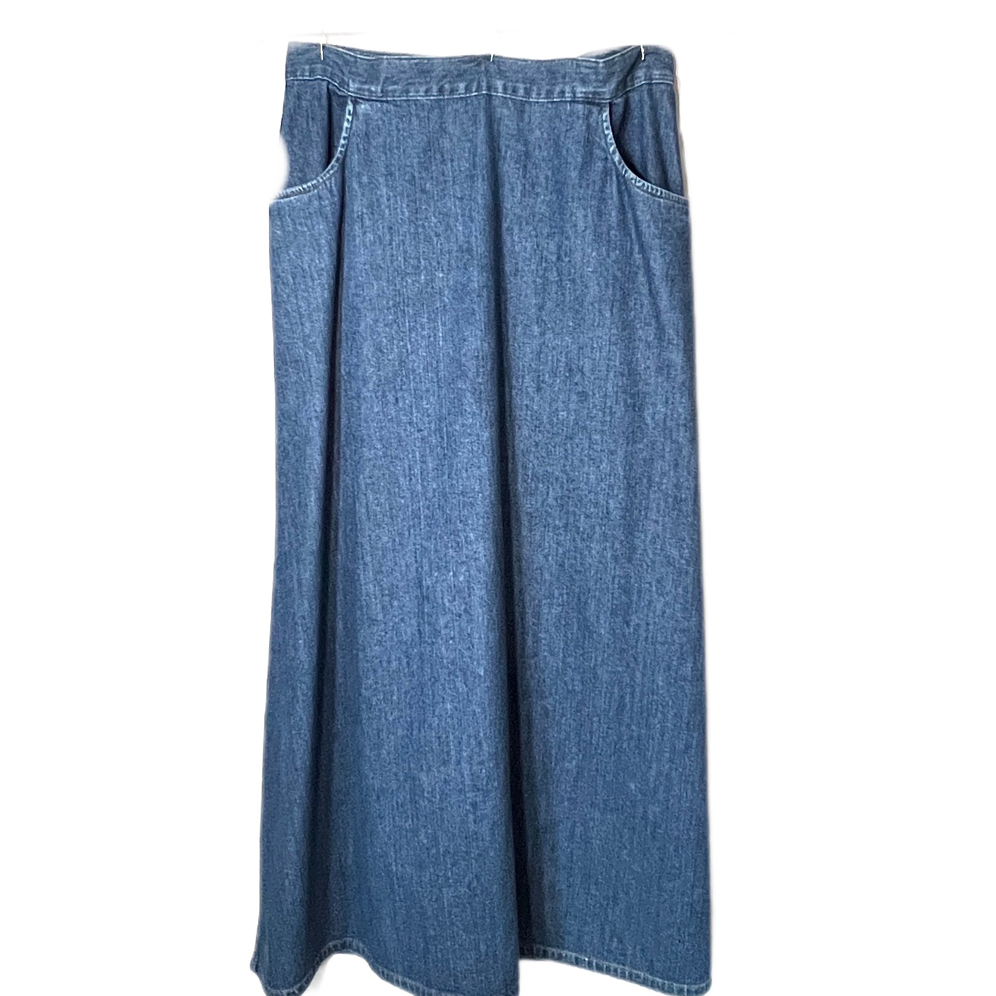 Women Pendleton Vintage Denim Maxi Skirt, SZ 12 large pockets & side slits .