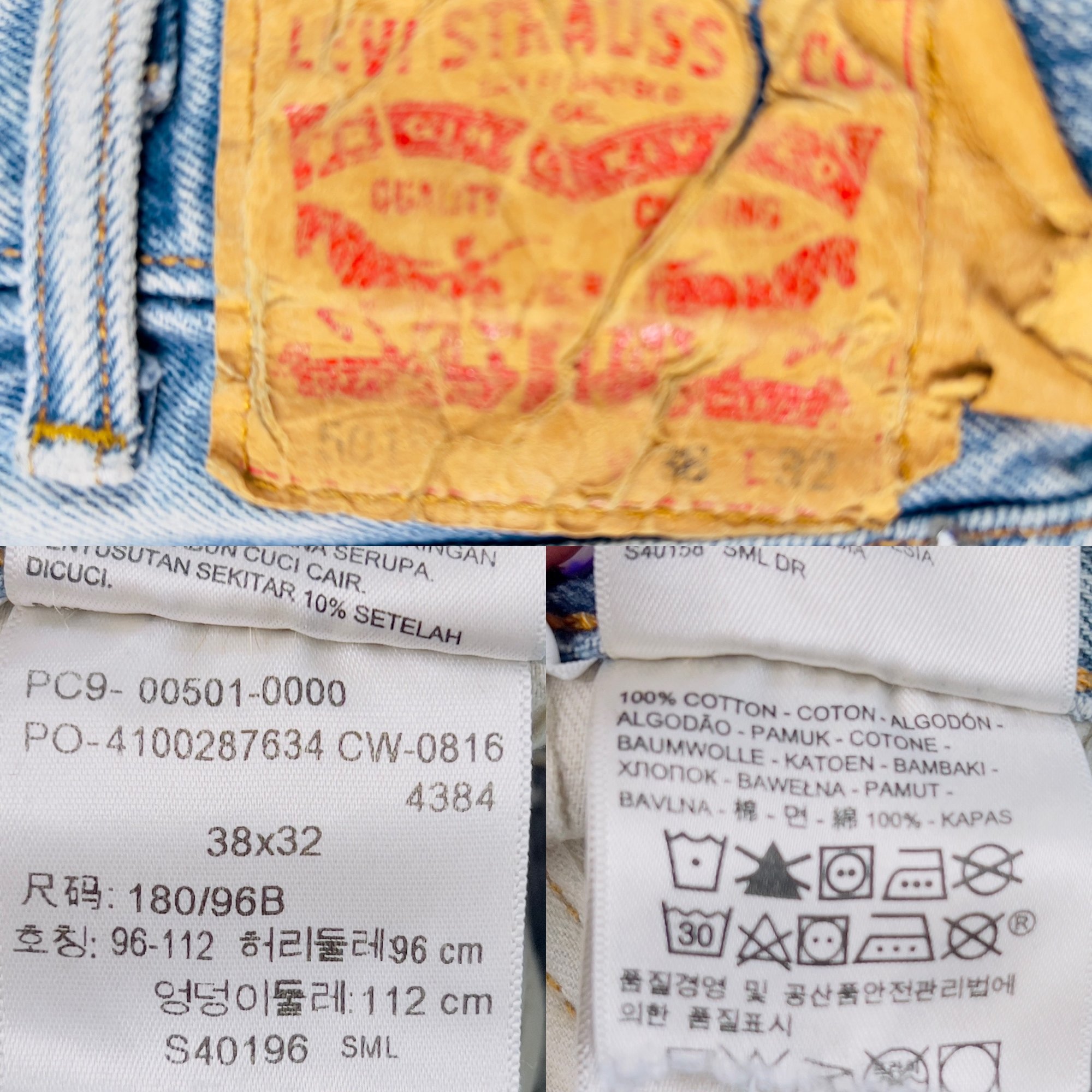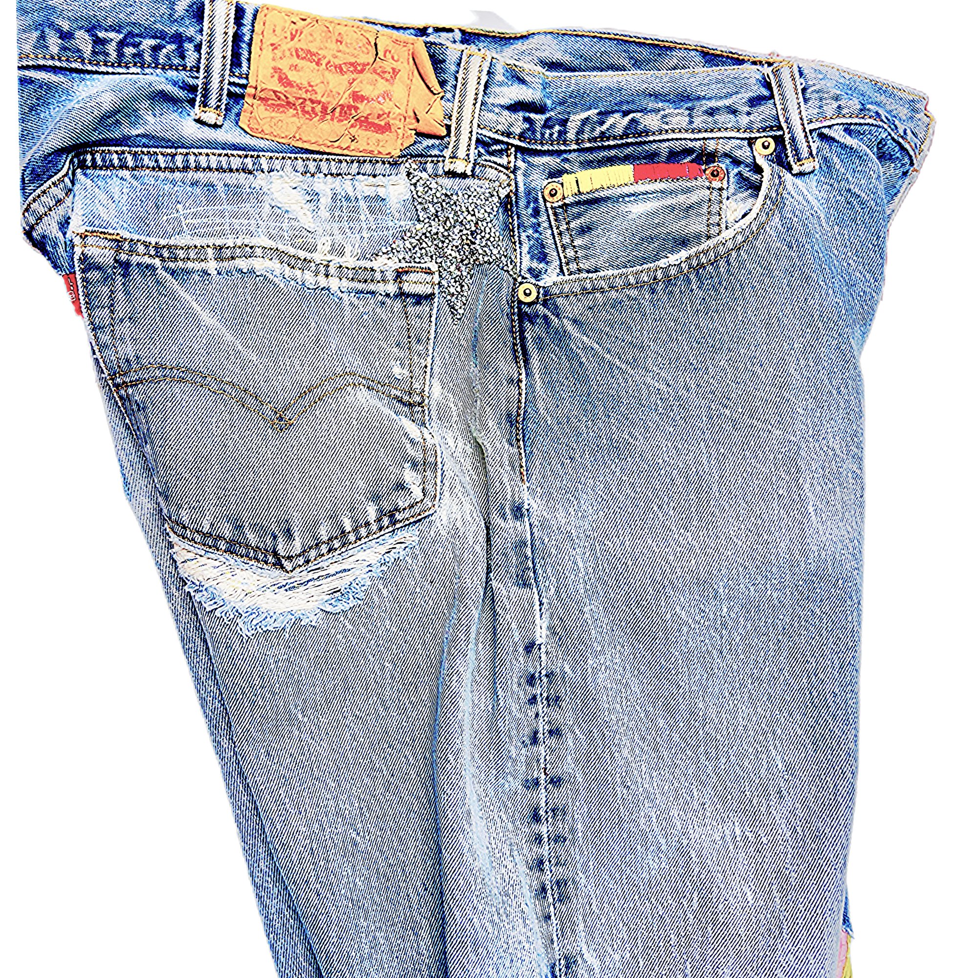 Levi's 501 Custom Retro Button Fly Jeans Patchwork, Signature denim pants SZ 35-30