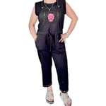 Women's Black Wall flower Overalls light weight knit embellished w-studs pins & skull patches