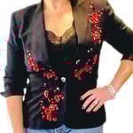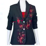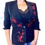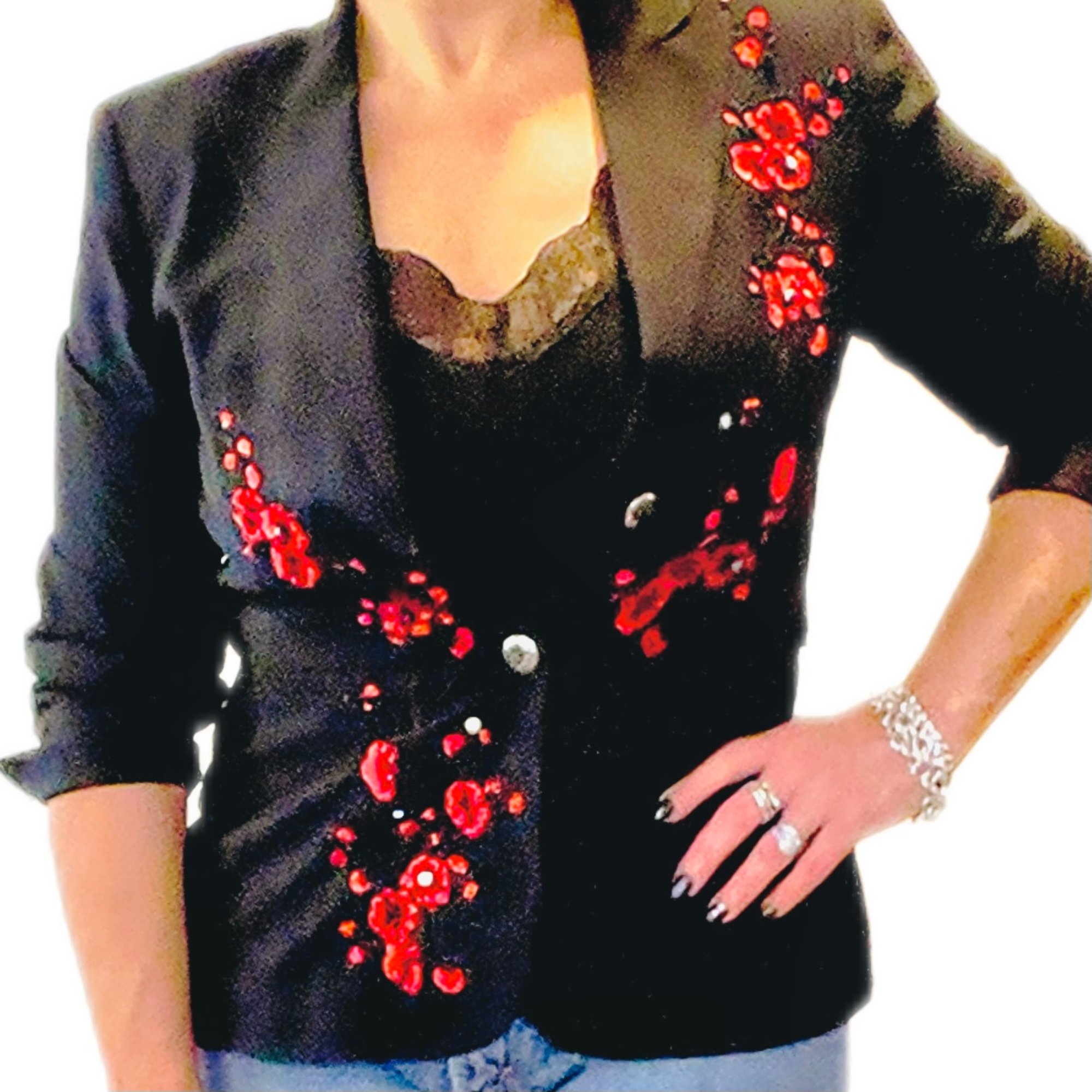Women's Black blazer custom made & embellished w/ Cherry blossom appliqués new buttons.
