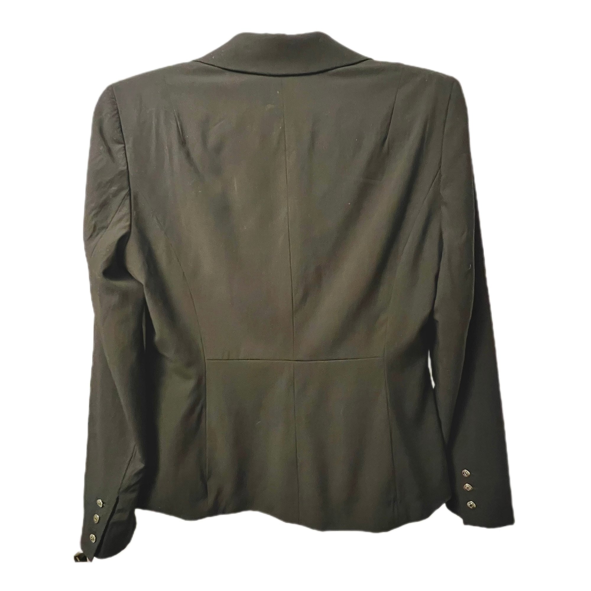 Double button closure, front slit pockets, traditional collar, structured & fully lined .