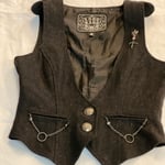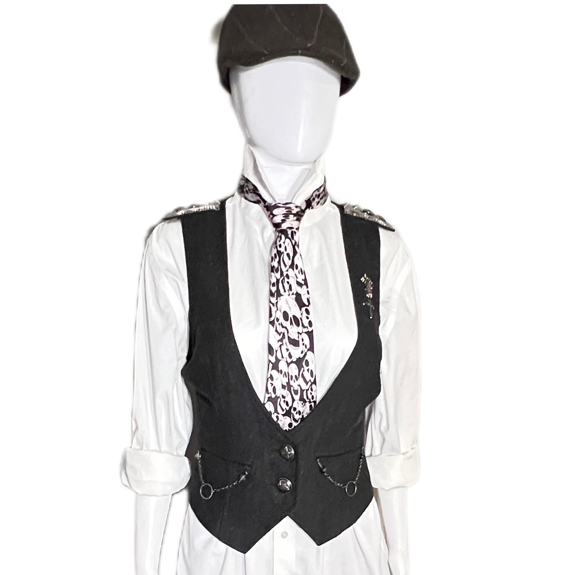 Women's Last Kiss Vest Reworked w- Silver shoulder epaulets skull & cross design & pocket chains