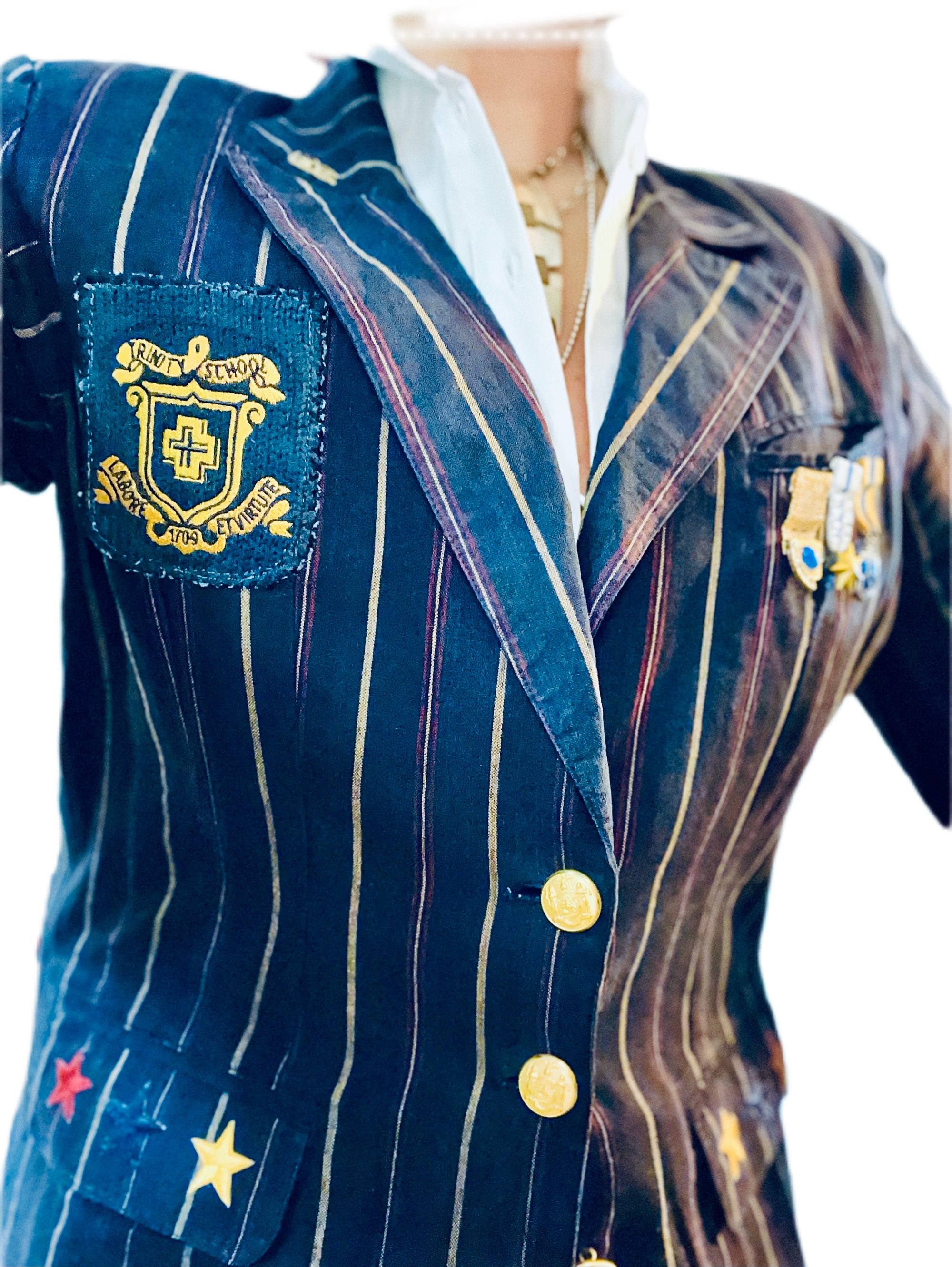 A Unique blazer suitable for colligate, military, school uniform, catholic school uniform, academia, darkacademia, preppy, prepcore, clueless, grandpa, grandpacore , oldmancore , eclecticgrandpa, aesthetics.