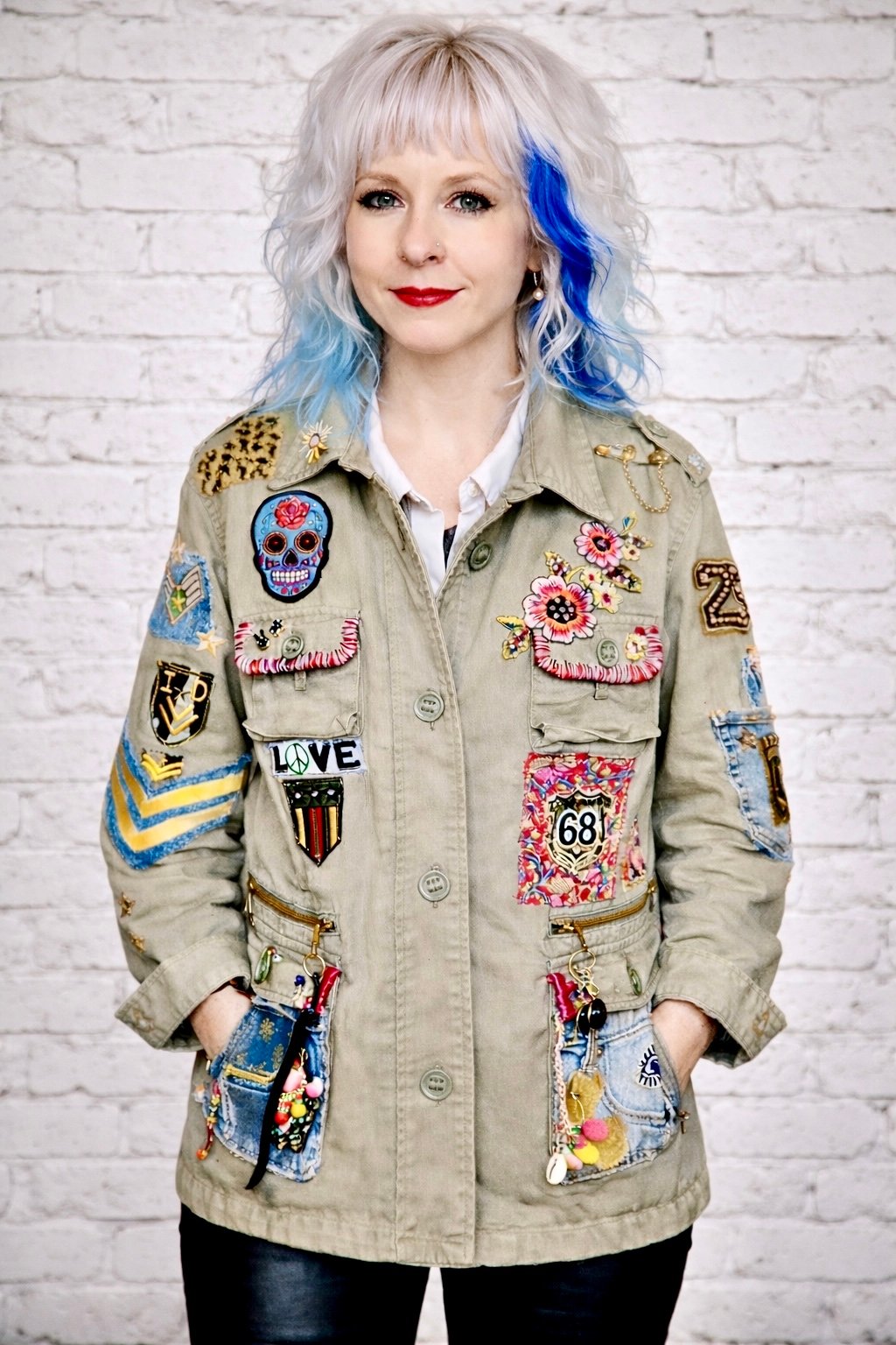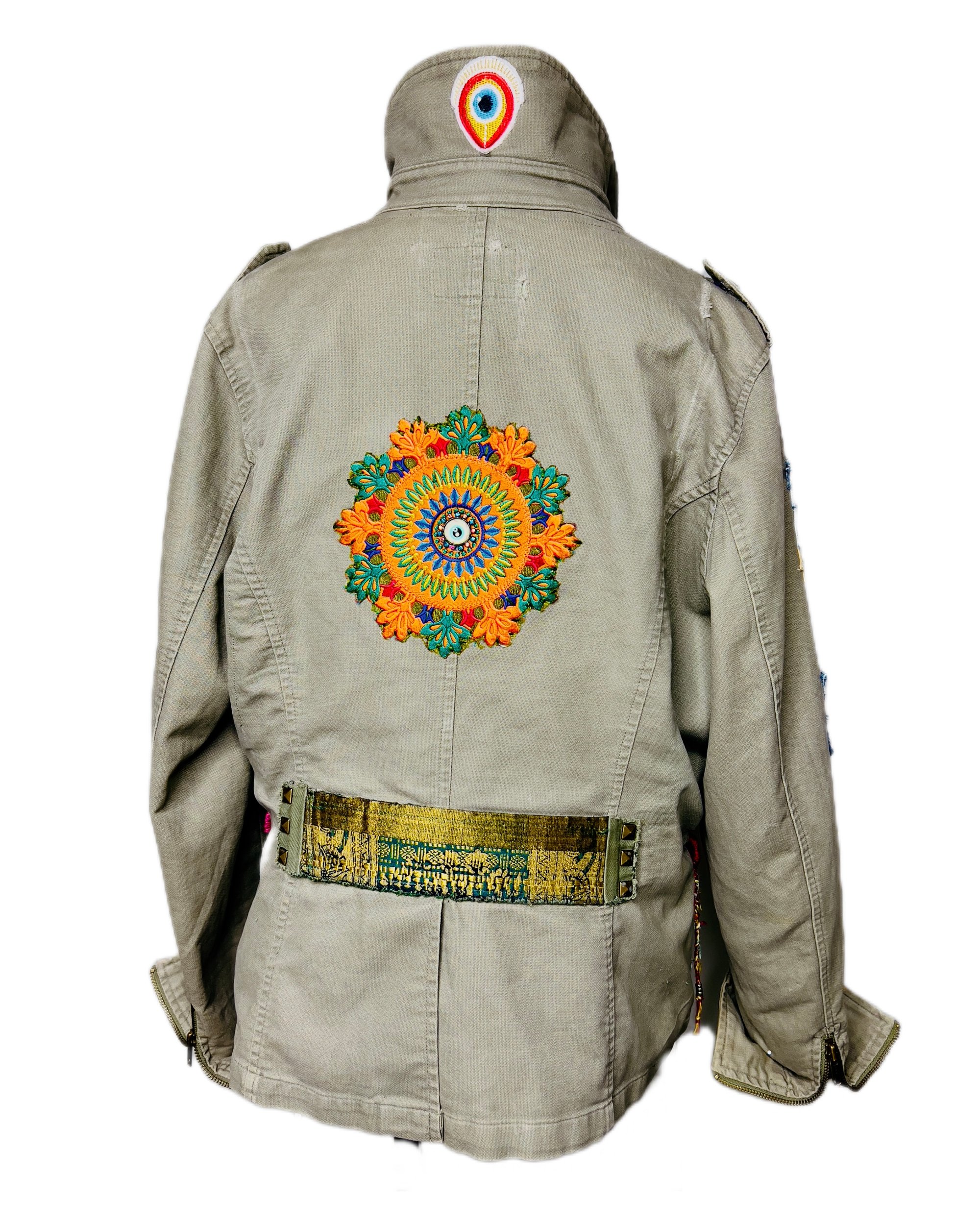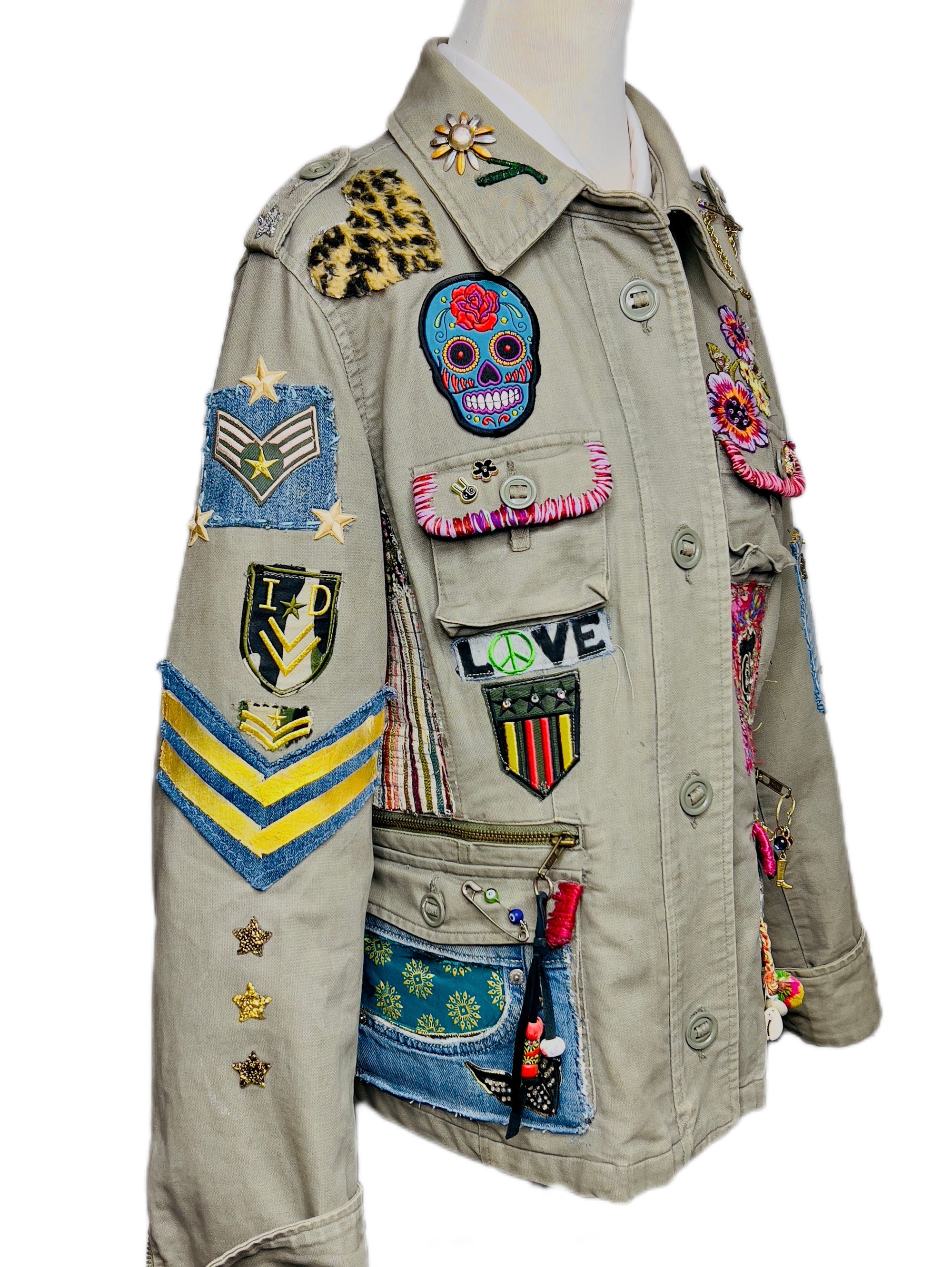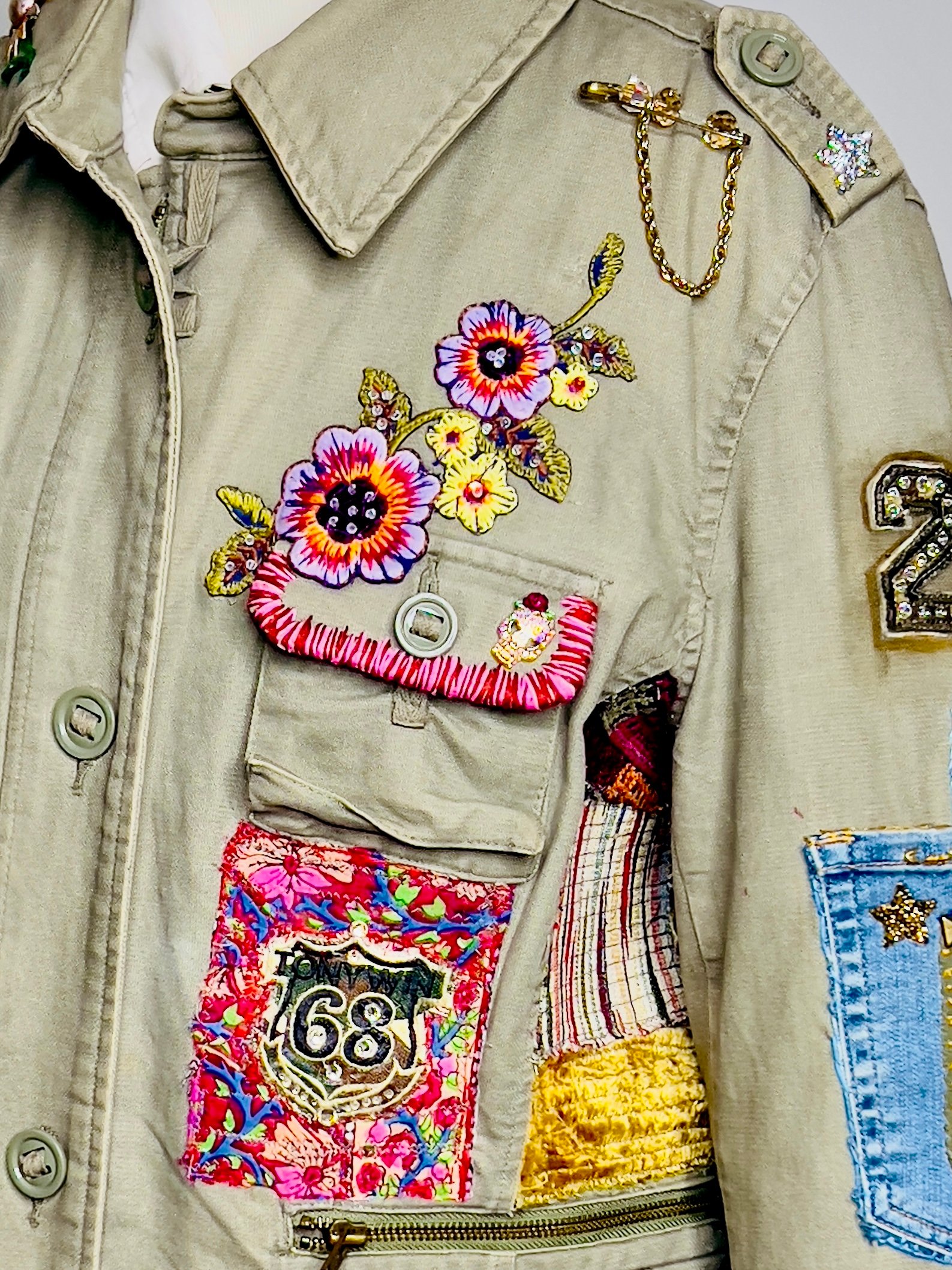 Women's Custom Military Jacket, Y2K Embellished patchwork w/ bohemian signature style
