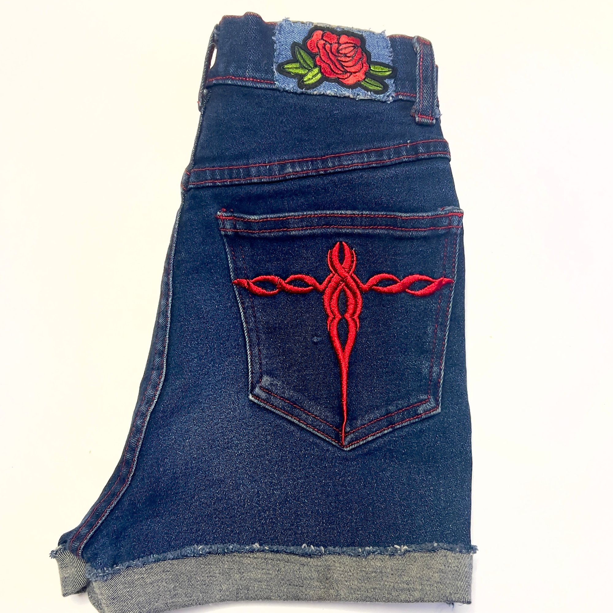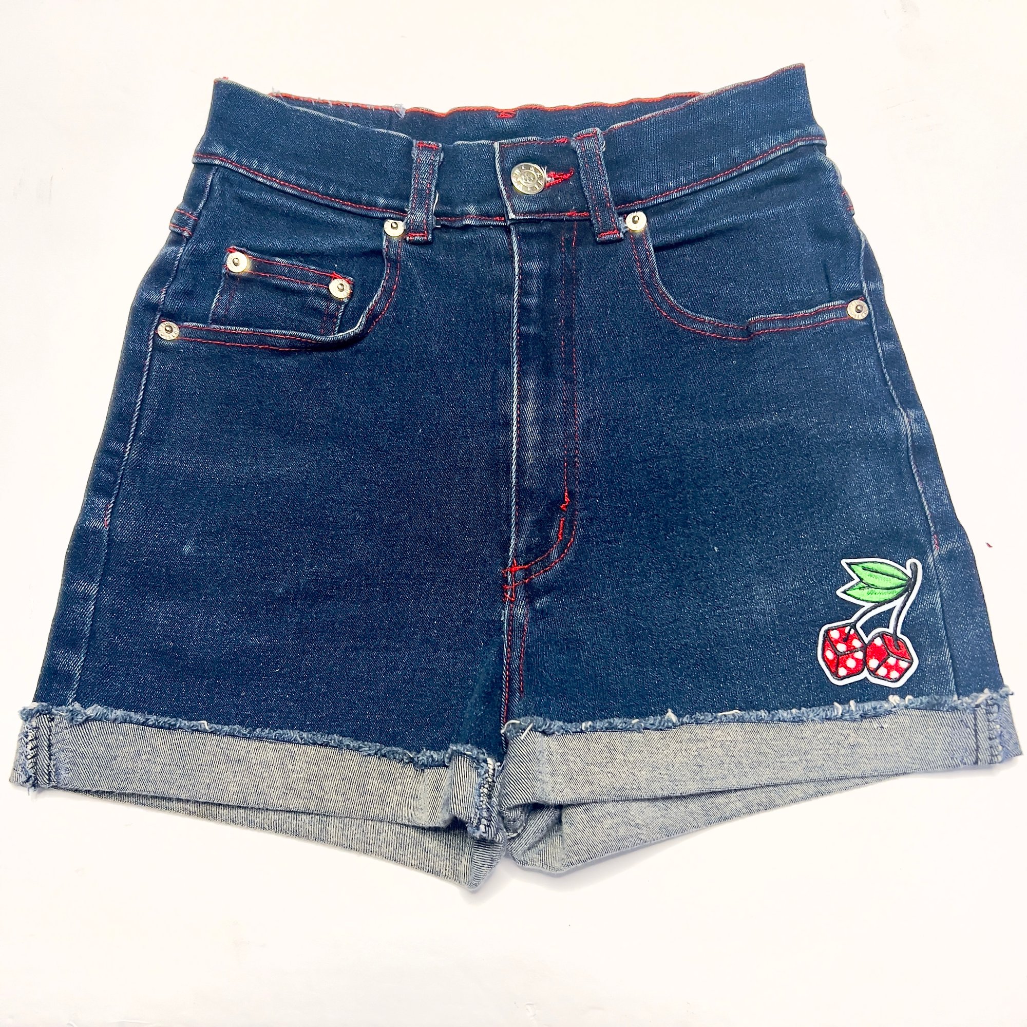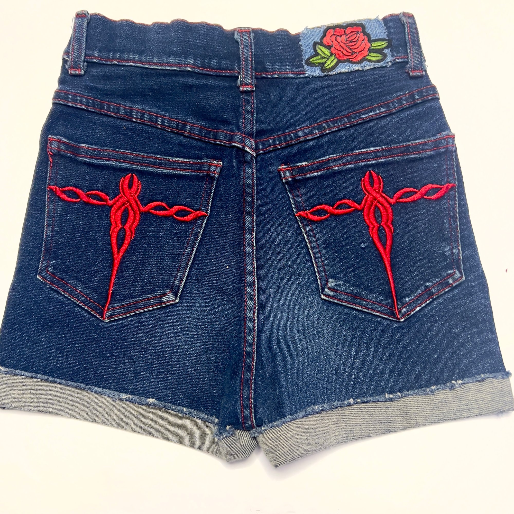 Women's Navi Cut Off Shorts red stitching on dark denim high rise pin up or rockabilly